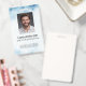 Modern vertical employee ID badge in a blue gradient design featuring a large photo area, editable name, title, company logo, and barcode. Perfect for corporate, retail, or office teams. Easy to customize for your professional needs.