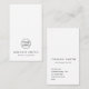 Modern, vertical, white custom logo business cards with your name and title on the front. Customizable template fields for name, title and contact information on the back. You can change background and font colours with the design tool. Elegant and stylish design for an accountant, consultant, lawyer, doctor etc