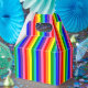 Favour box with the eight stripe lesbian, gay, bisexual, transgender (LGBT) pride rainbow flag with the colours of pink, red, orange, yellow, green, aqua, blue and purple. Customizable.