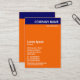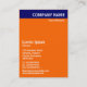 A vertical business card template with a dark blue header. All details on the front with the back left blank, which can be left as is or further customized. The design also allows plenty of space for the addition of other elements e.g. a logo.