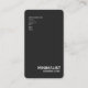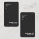 The background is a charcoal colour. The style of card is kind of breaking the traditional look with the contact information on the top left, and then the title on the bottom right.
