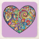 Very Colourful Mosaic and Floral Heart Square Paper Coaster