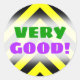 "VERY GOOD!" + Black & Yellow Chevron-Like Pattern Classic Round Sticker