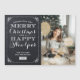 Affordable custom magnetic Christmas photo cards with simple templates for customization. This chic design features stylish typography on a faux chalkboard background with your custom photo. The text reads "Wishing you a very Merry Christmas and a Happy New Year". Personalize it with your photos, family name, the year or other custom text. Inside has space for additional photos and your personal holiday greeting. Use the design tools to edit the text, add more photos and create unique one of a kind holiday photo card magnets.