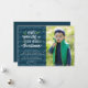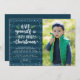 Show your Christmas spirit with a stylish navy "Very Merry Christmas" photo card. The festive holiday photo card features a navy striped background, snow border, fun typography, year and photo placeholder. Change the font style, card shape, and more to create a one of a kind Christmas card.