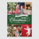 Custom printed magnetic holiday photo cards with a simple DIY template for customization. This colourful design features whimsical typography in green and white colours. The message read "Wishing You a Very Merry Christmas". The template has space for 3 family photos. Use the design tools to edit the fonts and colours.