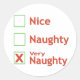 Three green check boxes with the words Nice, Naughty and Very Naughty in red text next to them, the box for Very Naughty has been checked with an "X" oops sorry Santa!