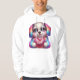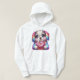 Un design Sweat - shirt à capuche mignon et coloré avec un chiot en arc-en-ciel tenant un coeur qui dit "AMOUR". Ce design est parfait pour les amoureux des animaux et les amateurs de fantaisie.