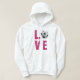 Love Soccer avec des lettres étincelantes rose chaud et le "o" est remplacé par un ballon de football.