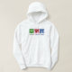 Un signe de paix, le coeur, et les lettres PT sur un sweat - shirt à capuche cool pour un kiné. Peace Love sweatshirt à capuche pour une clinique de réadaptation.