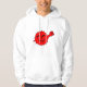 Vivid red sun mascot with a raised fist on black. Bold cartoon style, playful and energetic, perfect for youth apparel, sportswear, and event branding that stands out.
