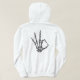 This premium unisex white hoodie features a unique hand-drawn skeleton art design inspired by human anatomy and abstract sketch illustration. The detailed black-and-white artwork shows two human skeletal figures standing on a rugged ground, symbolizing life, mortality, and artistic expression.