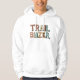Le mot en gras "Trailblazer" est écrit sur le t-shirt dans un spectre de couleurs cool, avec des formes géométriques jouement superposées pour former les lettres.