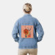 Un insecte rouge et jaune est entouré d'un chrysanthème et d'une fleur orange vif. Un bijou est suspendu à la fleur.
