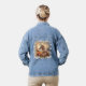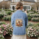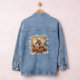 Veste Denim avec cheval galopant au coucher du soleil. Frontière florale. Design original. Voir une autre veste de jean jean jean de cheval : https://www.zazzle.com/beautiful_white_horse_gold_floral_wreath_denim_jacket-256885727004929090