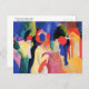Carte postale avec le tableau aquarelle, With a Yellow Jacket or Mit Gelber Jacke (1913), par August Macke (1887-1914), un peintre expressionniste allemand. Un abstrait représentant un groupe de personnes avec une femme dans une veste jaune au premier plan.