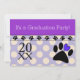 Vet Tech Graduation Invitations, purple and white polka dots with dog paw emblem. Full customizable on front and back. Perfect for veterinary technician graduation.