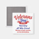 This glossy magnet captures the spirit of gratitude with an elegant flag and the words, “Because of your service, we live in freedom.” Ideal for campaigns, offices, and classrooms celebrating Veterans Day with lasting respect.