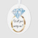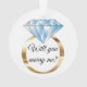 Ce magnifique ornement de Noël a une photo d'une bague avec les mots "Me marie-tu ?" pour créer une adorable proposition de vacances. Vous pouvez passer au texte à autre chose si vous le souhaitez.