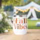 Ce design d'automne chic et dynamique comprend l'expression "Fall Vibes" dans une police audacieuse et d'inspiration rétro qui dégage une énergie chaleureuse et accueillante. Le texte est présenté dans un mélange ludique de couleurs automnales, y compris des oranges riches, des roses douces et des brins chauds, capturant parfaitement l'essence de la saison. Autour du texte, de petits étincelles ressemblant à des étoiles qui ajoutent une touche de fantaisie et de magie, rehaussant l'atmosphère festive générale du design. Les grandes lettres ondulées avec leurs courbes douces donnent au design un caractère vintage mais contemporain.