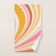 Vibes rétro colorées illustration abstraite avec rayons ondulés rose, violet, marron, beige, jaune et orange sur arrière - plan pastel