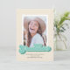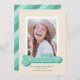 Ce amusant faire-part de graduation photo simple présente le mot "gradué" écrit dans un script de style rétro dans les tons verts. Le dos de la carte a un motif de bande en diagonale de coordination.