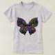 A stunning and intricate butterfly design featuring bold, vibrant colours and detailed abstract patterns. The symmetrical artwork incorporates swirls, floral motifs, and tribal-inspired elements, creating a mesmerizing visual appeal. Perfect for women’s t-shirts, this design adds a touch of elegance, creativity, and a playful burst of colour to any wardrobe. Ideal for casual outings or artistic expressions, it stands out beautifully against a black background.