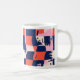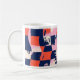 This energetic and vibrant mug design showcases an abstract chequerboard pattern, mixing bold colours like coral, navy, pink, and cream. The playful brushstroke textures and irregular shapes add a creative and modern flair to the classic design, making it perfect for those who enjoy a splash of artistic expression with their morning coffee or tea. This mug is an eye-catching piece, ideal for brightening up your kitchen collection and adding a unique pop of colour to your daily routine.