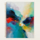 This is a vibrant and dynamic abstract painting with a rich, expressive texture. The composition features bold, sweeping brushstrokes that seem to radiate from a central point, creating a sense of movement and energy. The colour palette is a lively mix of deep blues, vibrant reds, bright yellows, and cool teals, with hints of purple and green. The white background provides a strong contrast, making the colours pop and giving the piece a modern, clean feel. The thick application of paint suggests a tactile, impasto style. The overall impression is one of a colourful explosion or a burst of emotion.