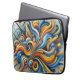 Protect your laptop in style with this vibrant abstract laptop sleeve. Featuring a bold and colourful swirl design in shades of blue, orange, and yellow, this sleeve combines modern artistry with functionality. Its durable construction ensures your device stays safe, while the creative design makes it a statement piece for work, school, or travel.