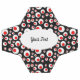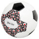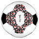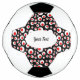 This soccer ball has a vibrant abstract pattern of bright red balls inside larger white balls on a black background. Customize your text in the white oval with the template.