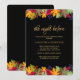 A vibrant autumn invitation with a black background and colourful borders of leaves and berries. (<a href='https://www.freepik.com/free-vector/autumn-background-with-pretty-leaves_2796958.htm'>Designed by Freepik</a>). <br/><br/>The card is easy to customize with your wording, font and font colour.<br/><br/>Not exactly what you're looking for? All our products can be custom designed to meet your needs at no extra charge.<br/><br/>Simply contact us at askcottonlamb@gmail.com.<br/><br/>Coordinating products available: Just ask us!