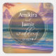 Vibrant Beach Background Faux Glitter Wedding Square Sticker