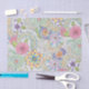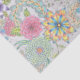 This tissue paper features an array of flowers, each distinct in its shape and colour palette, ranging from deep purples and blues to lively oranges and yellows. These flowers are interconnected by a network of delicate green leaves and vines, creating a harmonious blend of natural elements.