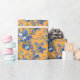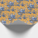 This is a botanical style image featuring an intricate pattern of blue flowers and foliage set against a vibrant orange background. The detailed floral design exudes elegance and sophistication, with each bloom meticulously rendered to capture its natural beauty. The contrast between the cool blues and warm oranges creates a striking visual appeal that can add a touch of whimsy and charm to any space. Perfect for those looking to infuse their decor with bold colours and classic floral motifs.