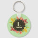 Vibrant Bright Spring Flowers Wreath Monogram Keychain