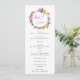 Elements: tropical floral wreaths surrounding your names an tetail. Names are in a whimsical script, while details are in a modern sans serif font. Colours: purple, pink, yellow, green, orchid, plum, magenta, fuschia, lemon, Themes: bright, tropical, beach, destination, romantic, bohemian, cheerful, modern, casual. Collection: Vibrant Casual Magenta Violet Yellow Wedding Collection Product Type: Program