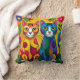 Vibrant Cat Duo - Artistic Floral Throw Pillow