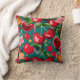 Vibrant Cherry & Floral Pattern on Teal Background Throw Pillow