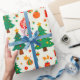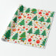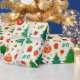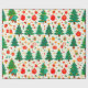 Colourful Christmas themed seamless pattern with festive trees, ornaments, bows, gifts, stars, candy canes, and seasonal decorations designed with a cheerful and whimsical holiday theme on a light background.