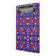Vibrant clipboard with a symmetrical, kaleidoscopic pattern in purple, blue, and orange hues. The design creates a dynamic, energetic feel.