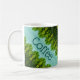 Stylish and bold lime green, and teal coffee mug. The teal can be changed to any colour. The coffee text can be personalized, or text is removable.