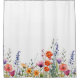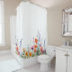 This vibrant colorful watercolor wildflowers shower curtain showcases a pattern with a lively mix of purple, orange, and red jewel-toned blooms across the bottom.