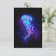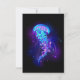 Large, blue, artistically drawn, glowing, bright jellyfish, with long tentacles on black background with purple bioluminescence. Luminous jellyfish.