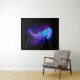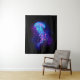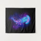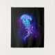 Large, blue, artistically drawn, glowing, bright jellyfish, with long tentacles on black background with purple bioluminescence. Luminous jellyfish.