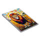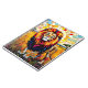 Lion themed notebook. A beautiful ai illustration of a lion in a stunning stained glass and broken tiles motif style in earthy colours like brown and blue.