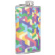 Vibrant Contemporary Geometric Pattern With Name Hip Flask