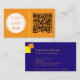 A sleak modern design with bold contrast colours of orange, dark blue and yellow. Simple and modern. All the contact information you need: name, titel, social media, address, phone, website and e-mail. Classic business card but with a vibrant colour combination. Add your own logo and QR code.