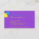 A sleak modern design with bold contrast colours of bright blue, purple and yellow. Simple and modern. All the contact information you need: name, titel, social media, address, phone, website and e-mail. Classic business card but with a vibrant colour combination. Add your own logo and QR code.