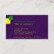 A sleak modern design with bold contrast colours of vibrant green, dark purple and yellow. Simple and modern. All the contact information you need: name, titel, social media, address, phone, website and e-mail. Classic business card but with a vibrant colour combination. Add your own logo and QR code.